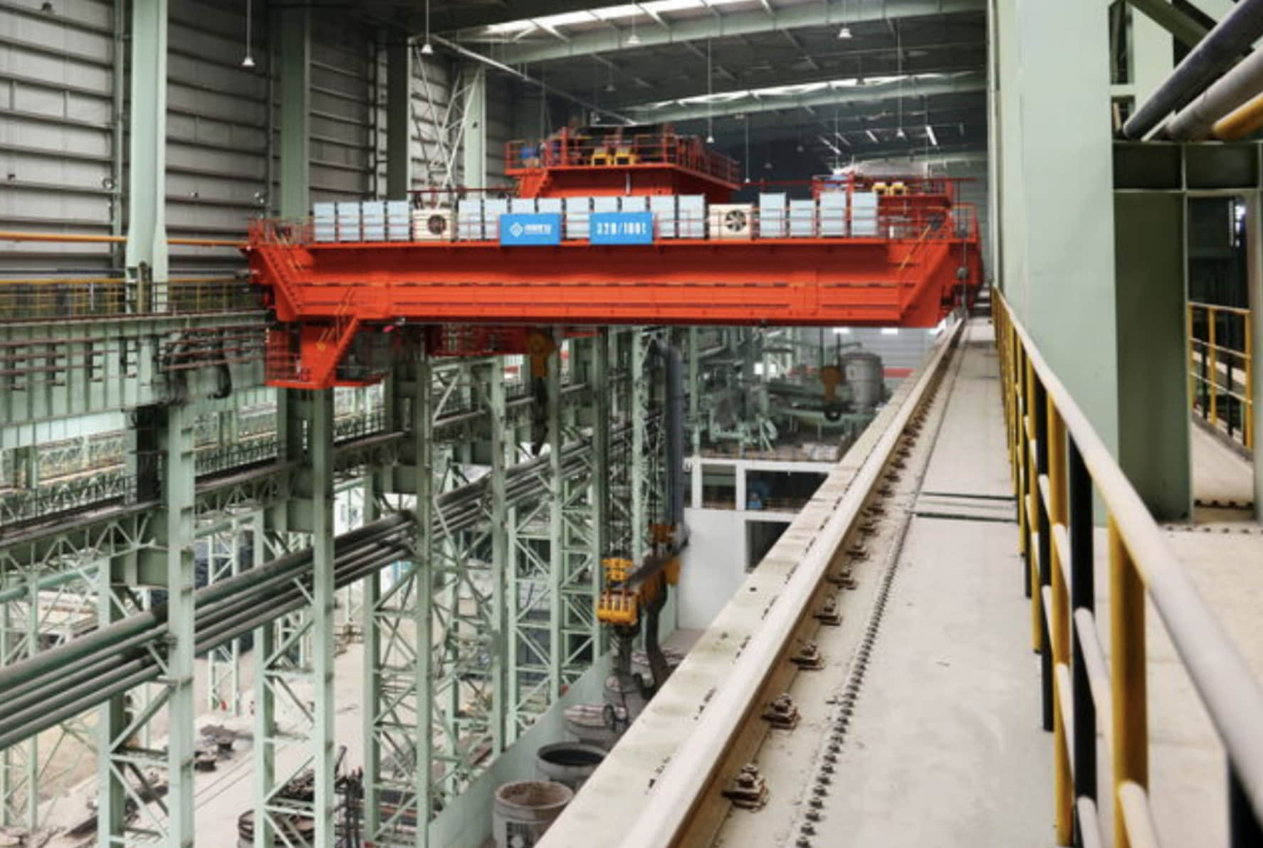 該產品采用雙梁雙軌梁結構,是目前國內較大的雙梁單小車鑄造起重機,橋架由兩根主梁和兩根鉸接端梁組成。整體布置緊湊合理。 減速器全部采用硬齒面減速器;滑輪采用新工藝軋制滑輪,外形美觀,繩槽耐磨;主要受力軸類全部采用鍛件;為保證裝配精度,采用整體加工制造工藝。 整車采用模塊化,等強度等壽命設計理念,同時考慮人機工程更科學,傳動件與結構件匹配更合理,不僅方便檢修維護,同時可大大提高了整機的壽命周期。